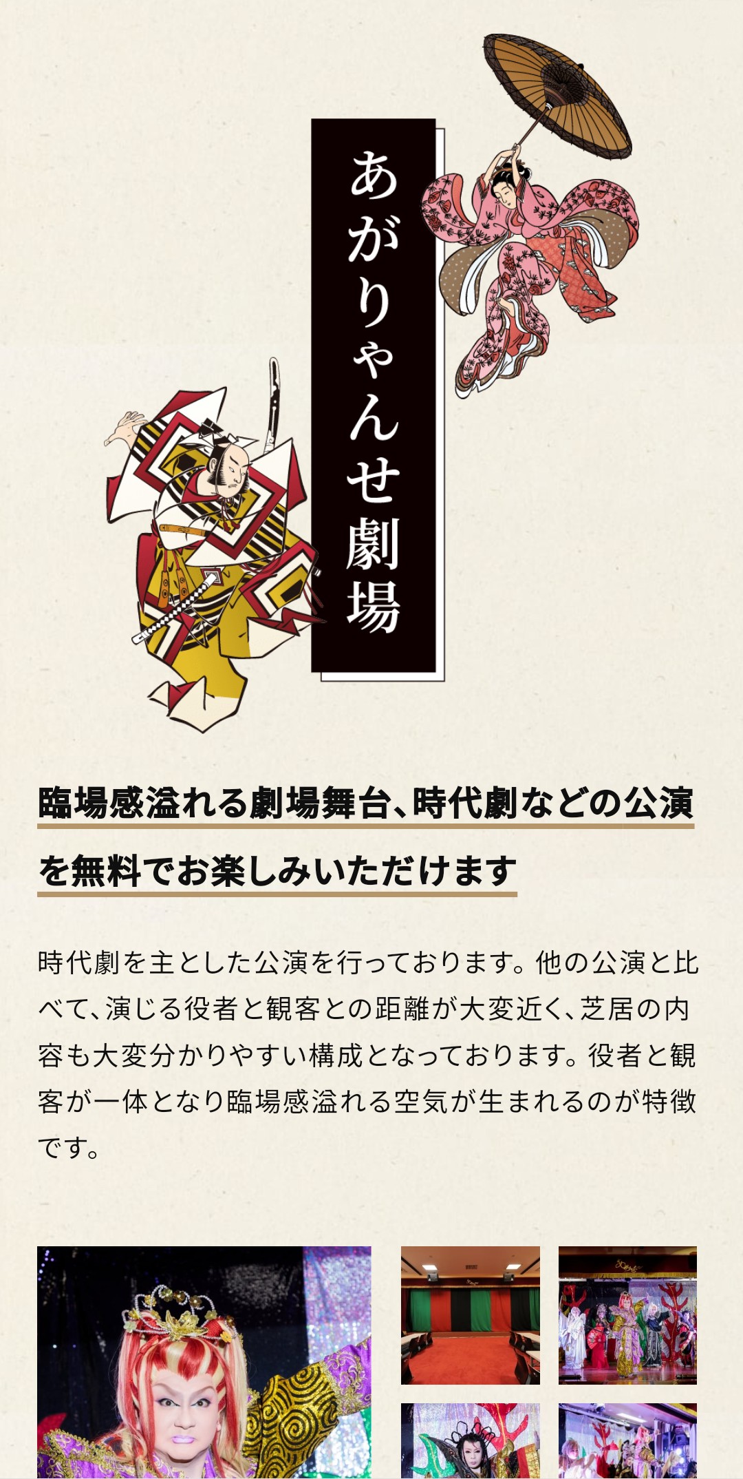 ここは大衆演劇「あがりゃんせ劇場」がありますが、今回は残念ながら観劇できませんでした。