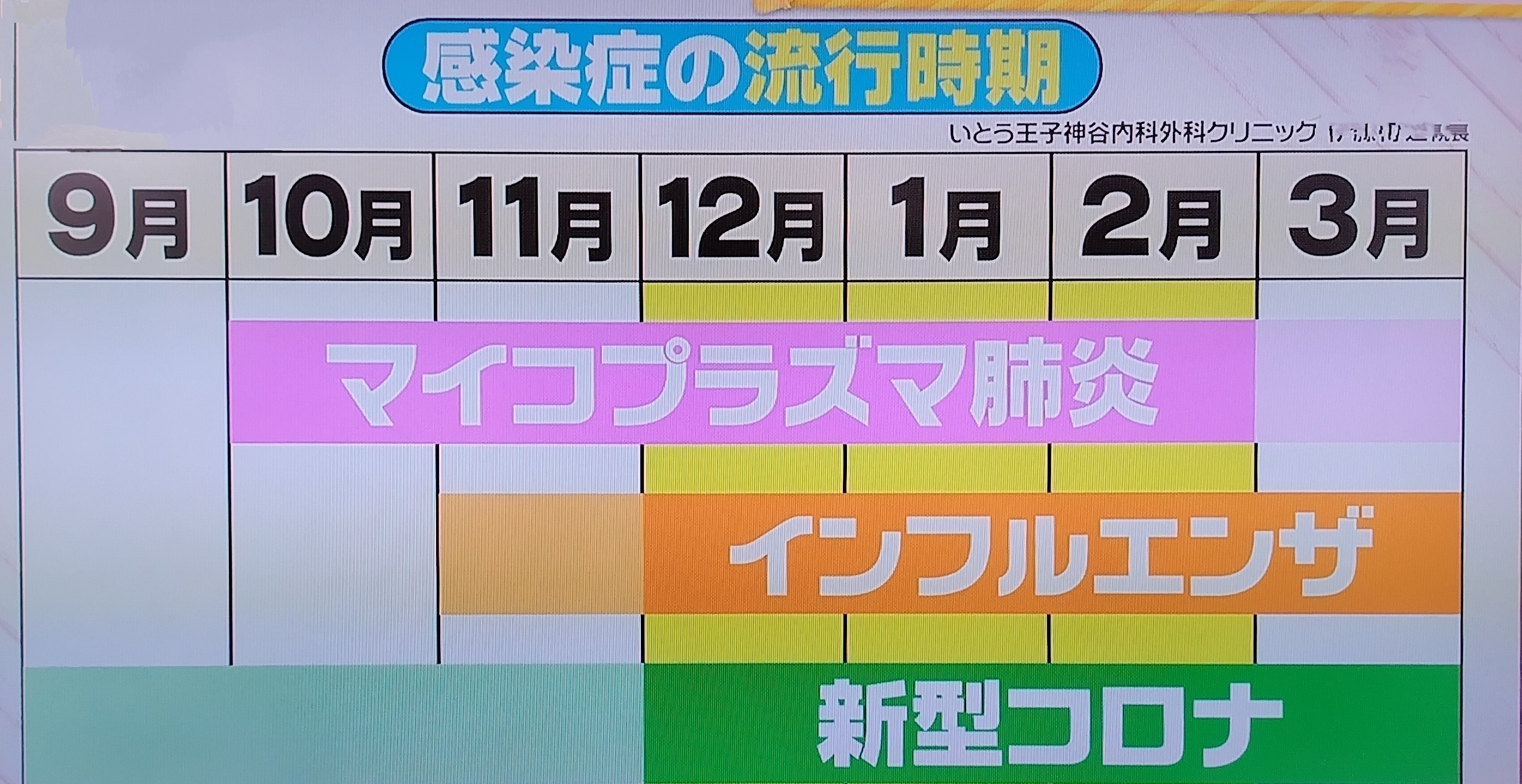 普段であれば、マイコプラズマは10月ぐらい、インフルエンザは12月くらい、新型コロナは1月くらいから増えてくる感覚ということですが、今、前倒しになってきていると感じているということです。