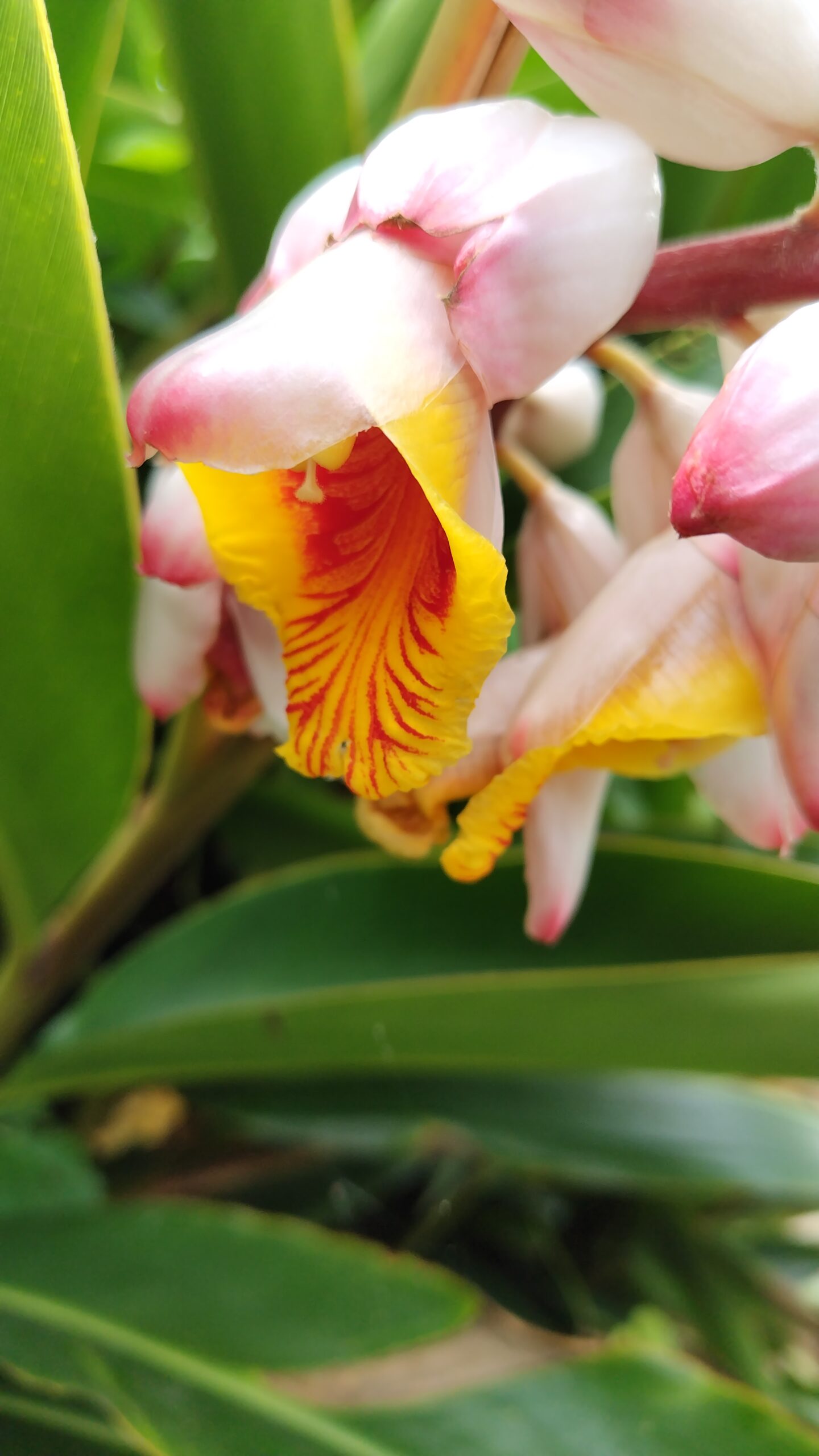 伊良部大橋を渡って、月桃の花が咲く小さな植物園に行きました。今が見頃で、つい最近鞘から出て来た花の粒たちは瑞々しく輝いていました。南国の初夏に咲く花は6月の慰霊の日の頃には、もう咲いていないことから、沖縄で歌い継がれてきた「月桃」の歌詞に出てきます。葉っぱから爽やかな香りが漂い、花は化粧品などに使われています。沖縄の人たちが愛でている綺麗な花です。
