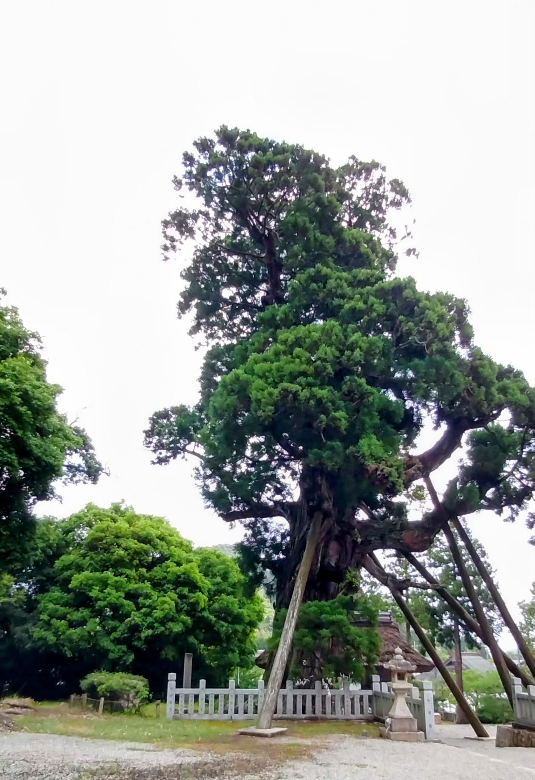 木の周囲には枝を支える太い木の柱が立てかけられており、近くで見るとその迫力に驚くでしょう。遠くからでもパワーが伝わってきそうな不思議な感覚を味わえますよ。