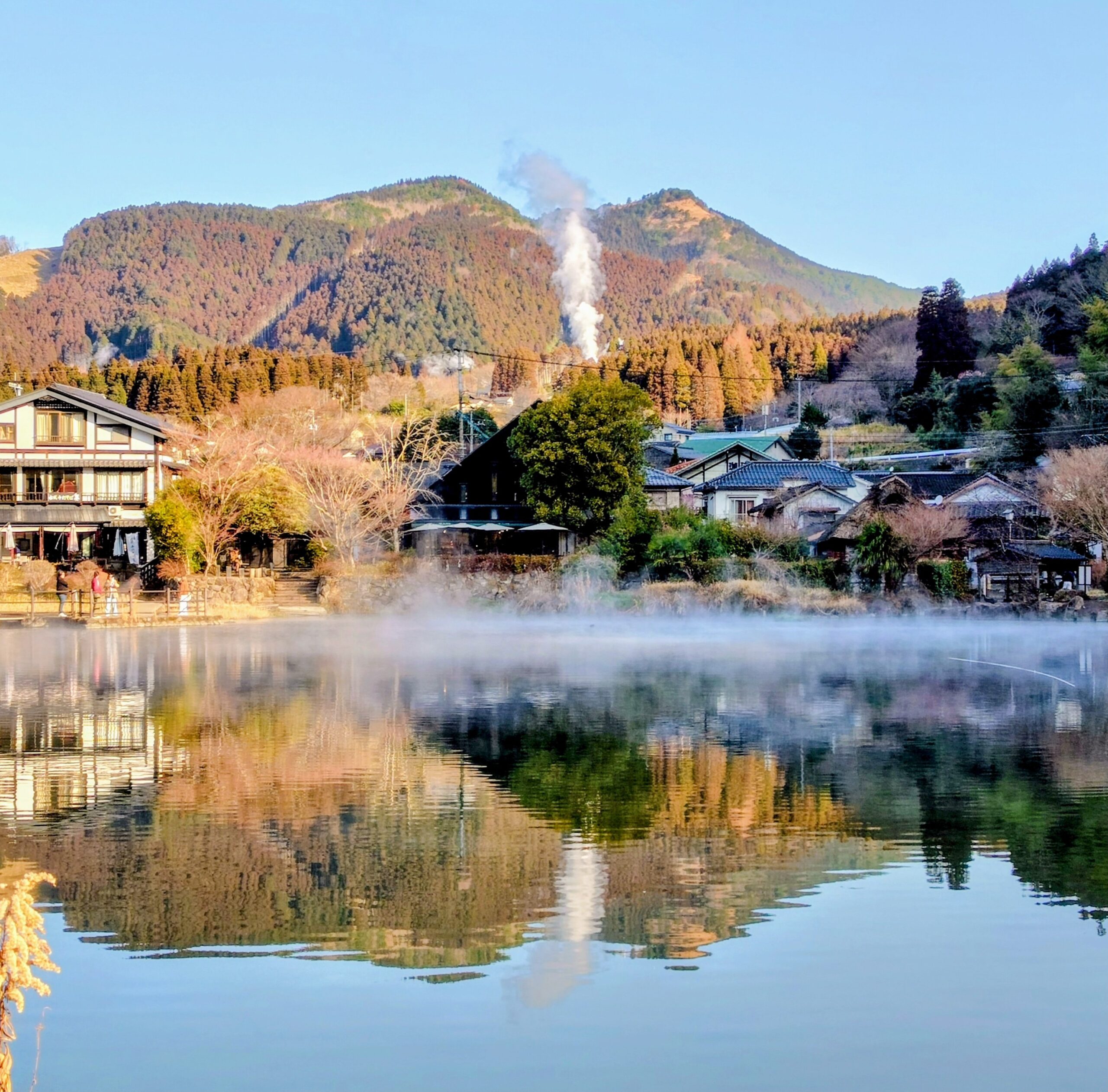 川沿いの桜と菜の花が町に彩を与える春、新緑が眩しい初夏、由布山麓の緑と青空のコンラストが美しい夏、盆地の朝が白い霧に包まれる秋、底冷えする寒さによって金鱗湖の湖面から立ち上る靄が幻想的な冬と、それぞれの時期ならではの自然の豊かな表情も楽しむことが出来ます。