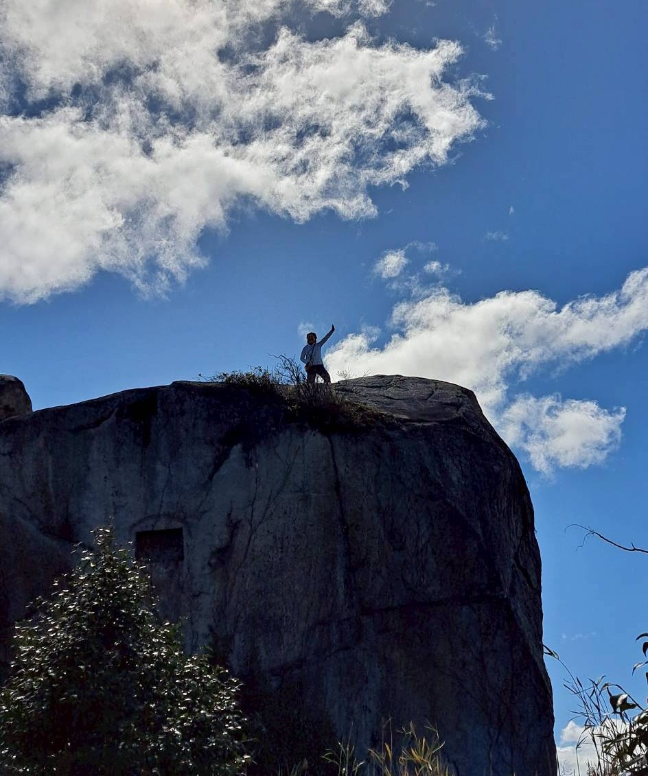 岩の縁まで進むと足がすくむほどの高度感ですが、目の前に広がるのは360度の大パノラマ。視界を遮るものは何一つありません。